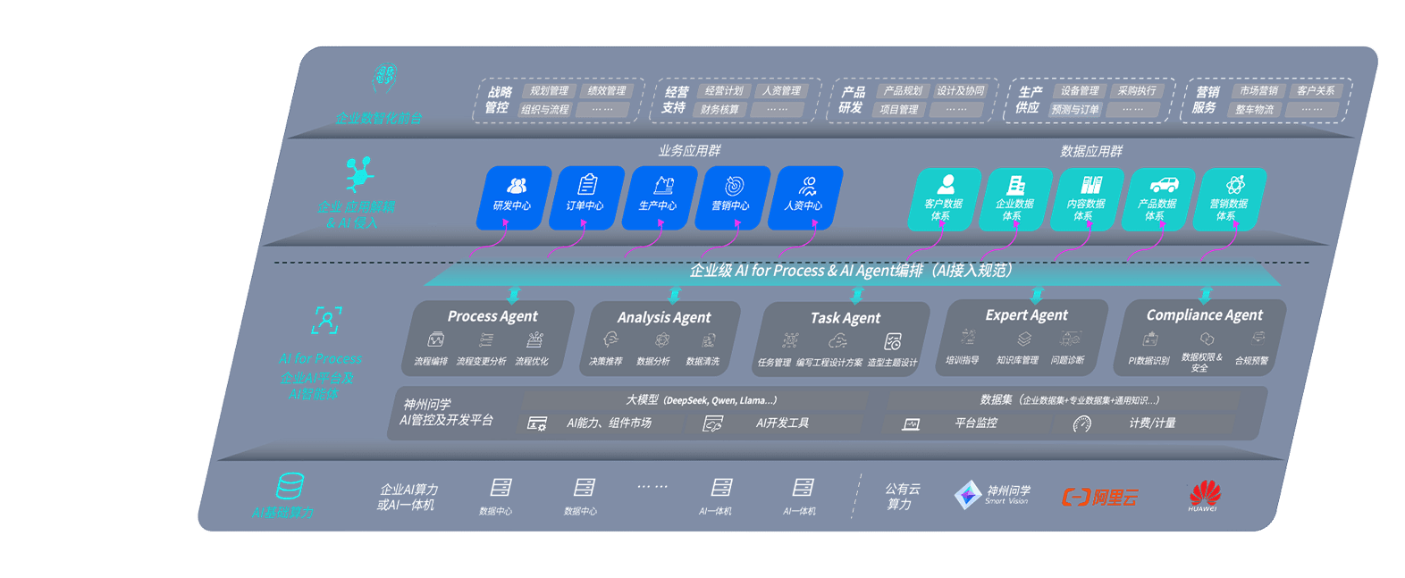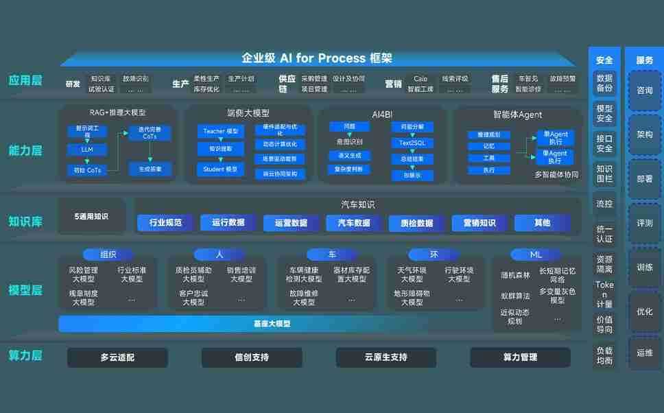NG娱乐问学智车解决方案是一套基于AI技术的汽车行业智能化系统,,,,覆盖从底层算力到顶层AI应用的全栈方案。。。。方案由算力层、、、、模型层和应用层组成:算力层,,方案支持多种一体机配置,,,具备云端灵活部署、、多云适配以及动态优化计算资源的能力;模型层,,,,NG娱乐问学平台版提供了企业级AI应用一站式构建与管理平台,,支持基于后训练强化技术的汽车企业专属模型的训练、、、评测和运营;应用层,,NG娱乐问学DeepSeek版提供包括超级员工、、、智能招采、、、智能营销、、智能客服、、AI for BI等一系列解决方案,,可助力汽车行业实现数字化转型,,,,让管理更智能、、、、响应更敏捷。。