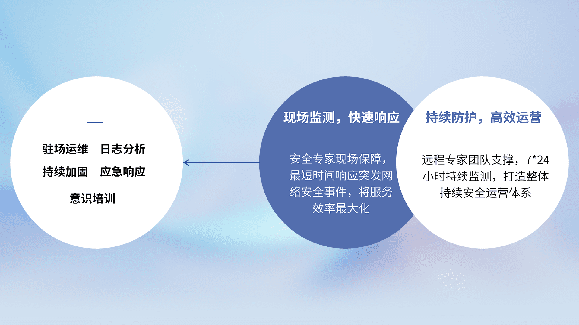 针对客户行业特性,,提供专属的一站式安全管理服务,,,帮助客户全面感知网络空间威胁,,,,通过安全专家的线上、、、线下防护支持,,实现风险闭环,,,将安全保障常态化,,,为客户打造常态化安全运维运营服务。。。